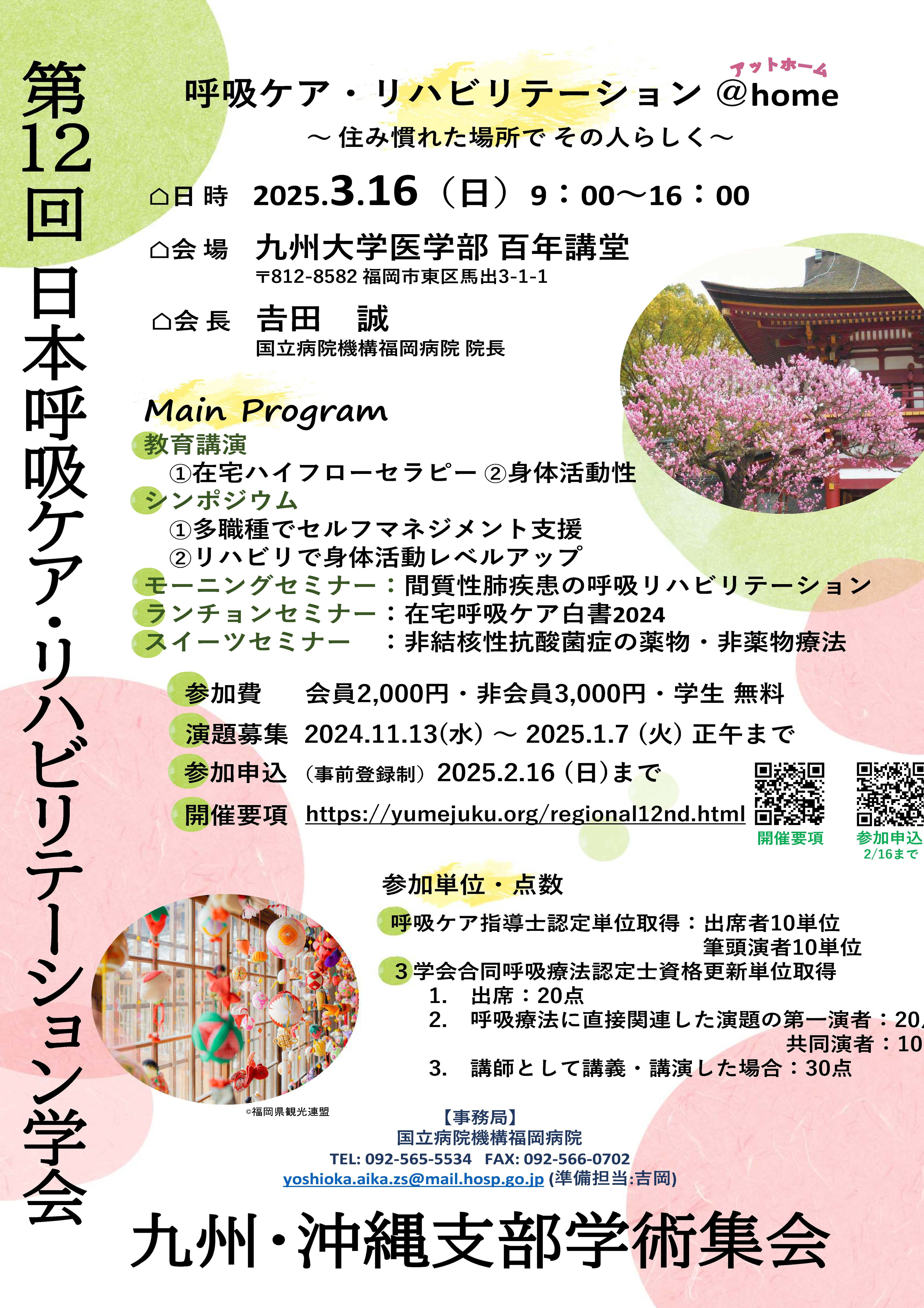 第12回日本呼吸ケア・リハビリテーション学会 九州・沖縄支部学術集会
