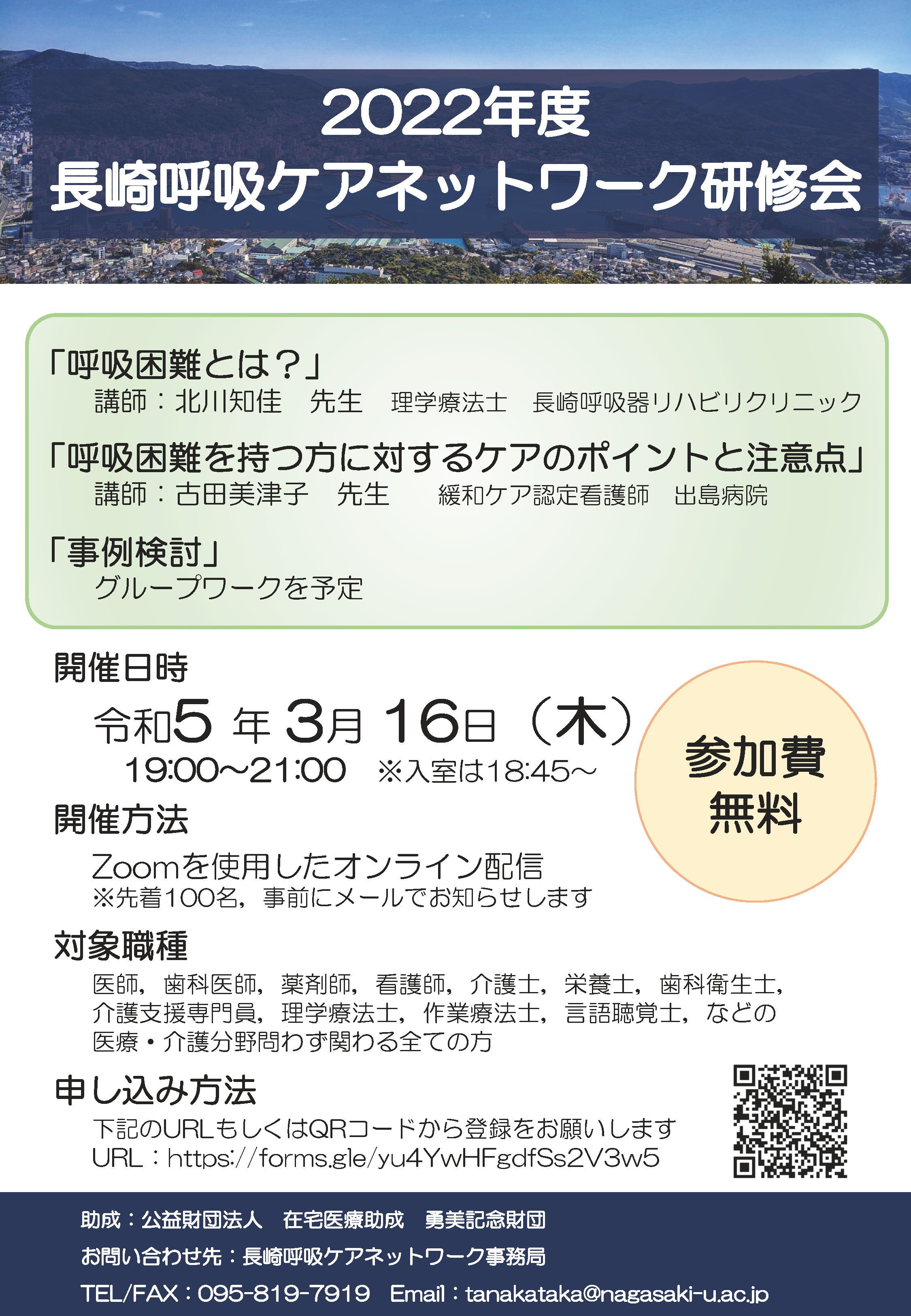 【対象職種】医師、歯科医師、薬剤師、看護師、介護士、栄養士、歯科衛生士、介護支援専門員、理学療法士、作業療法士、言語聴覚士などの医療・介護分野問わず関わる全ての方