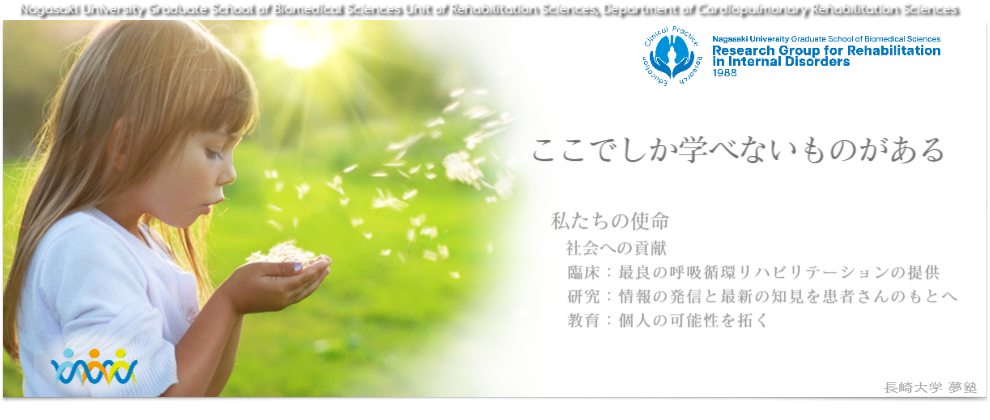 2015年4月1日付けで,長崎大学大学院 医歯薬学総合研究科 医療科学専攻 リハビリテーション科学講座 内部障害リハビリテーション学分野の教授を拝命し,恩師である千住秀明前教授に続く2代目として,本研究室「夢塾」を主宰させていただくこととなりました。ここまで多くの先生方や患者さんに育てていただき,今の自分が存在している幸運とありがたさを改めて実感すると同時に,不安と緊張,そして戸惑いと重責を日々感じている毎日です。